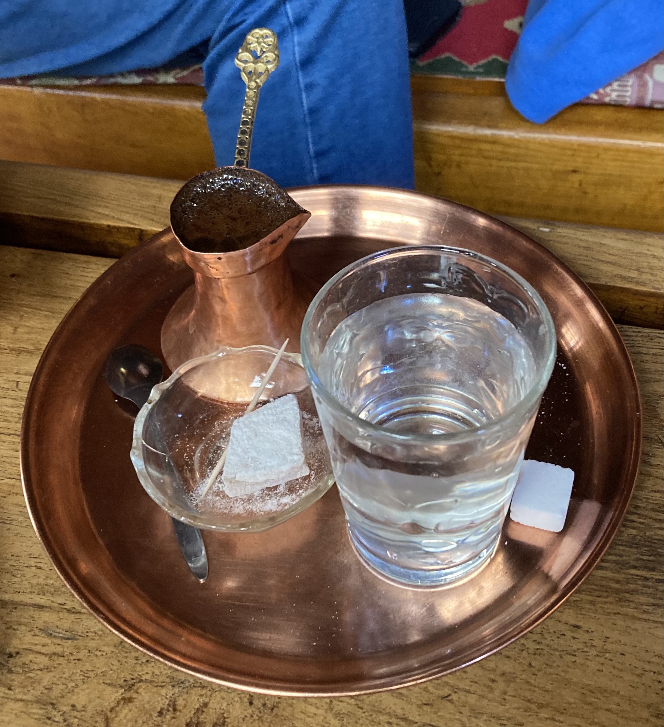Traditional Bosnian coffee was a fun experience, a piece of Turkish delight is always included. Also, everyone smokes cigarettes that they mostly roll on their own.