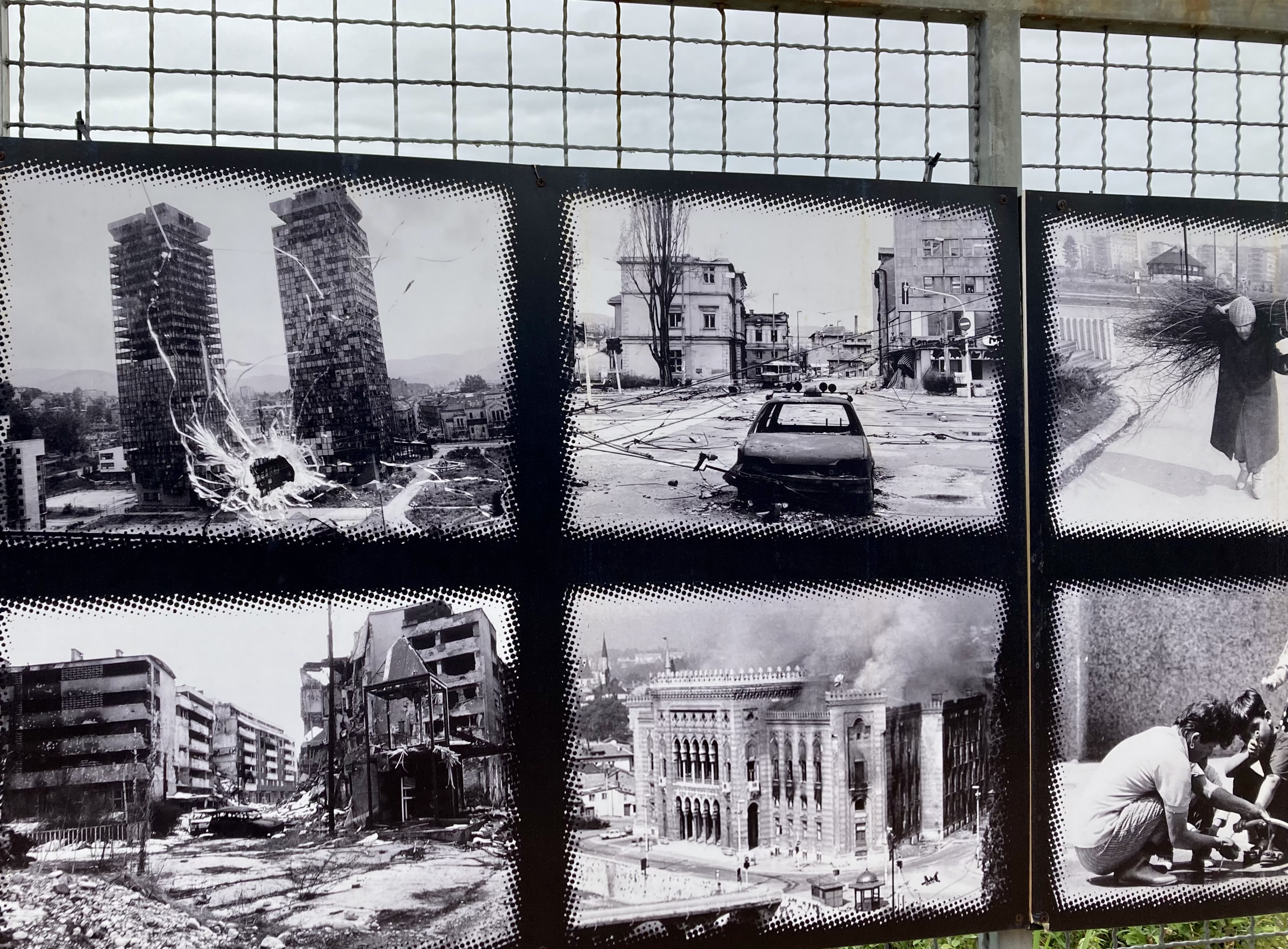 Areas in the streets still show evidence of bombs and rather than repairing these areas, Sarajevans have framed these as a way to remember and honor those who died in the conflict.