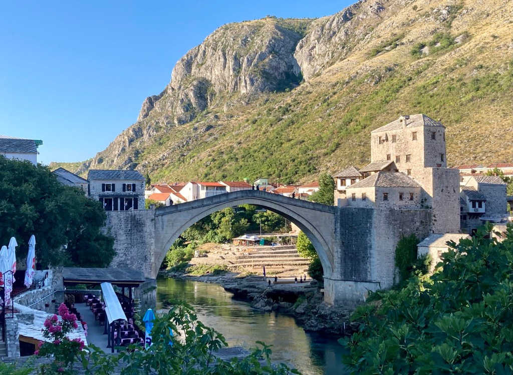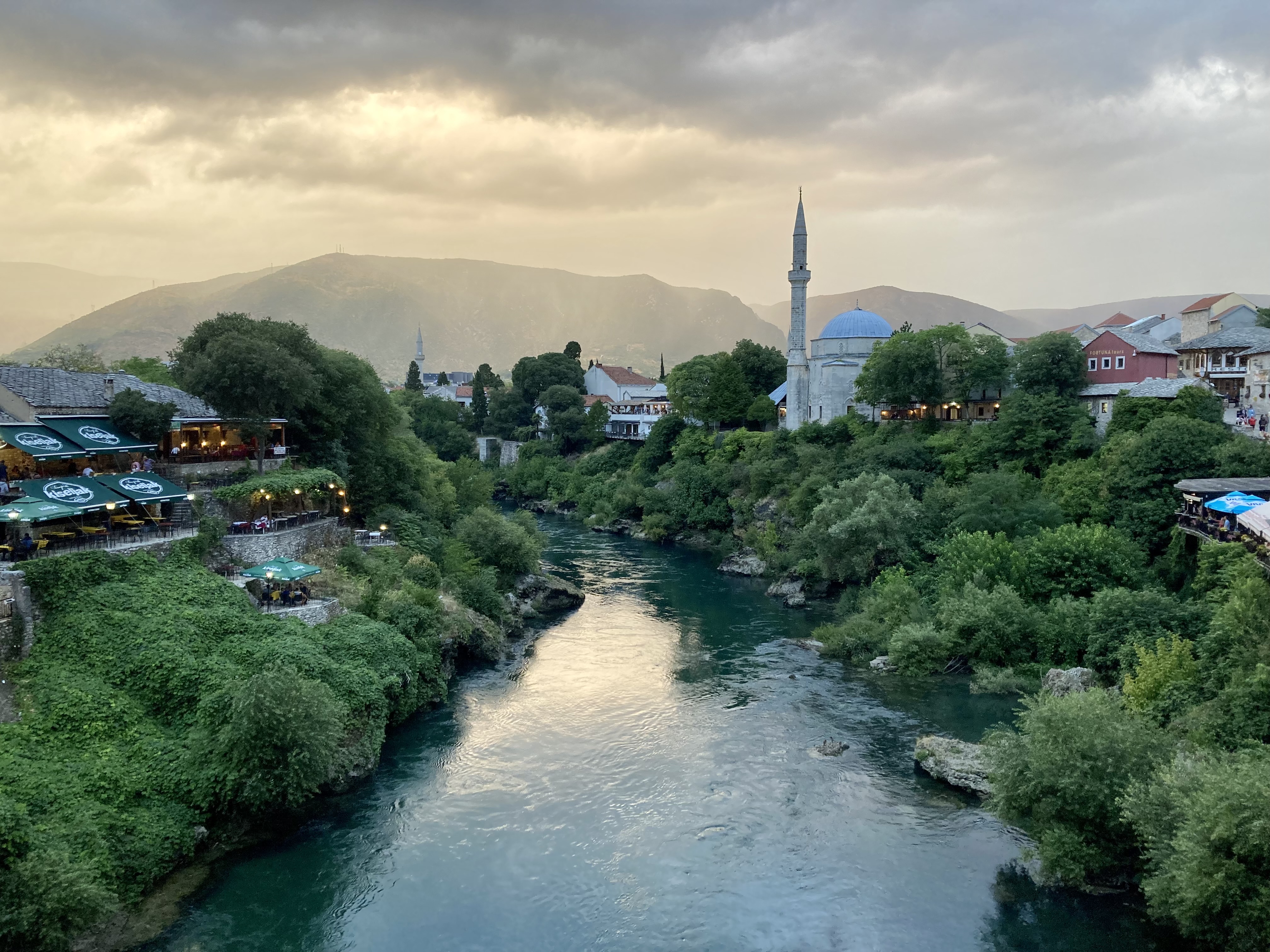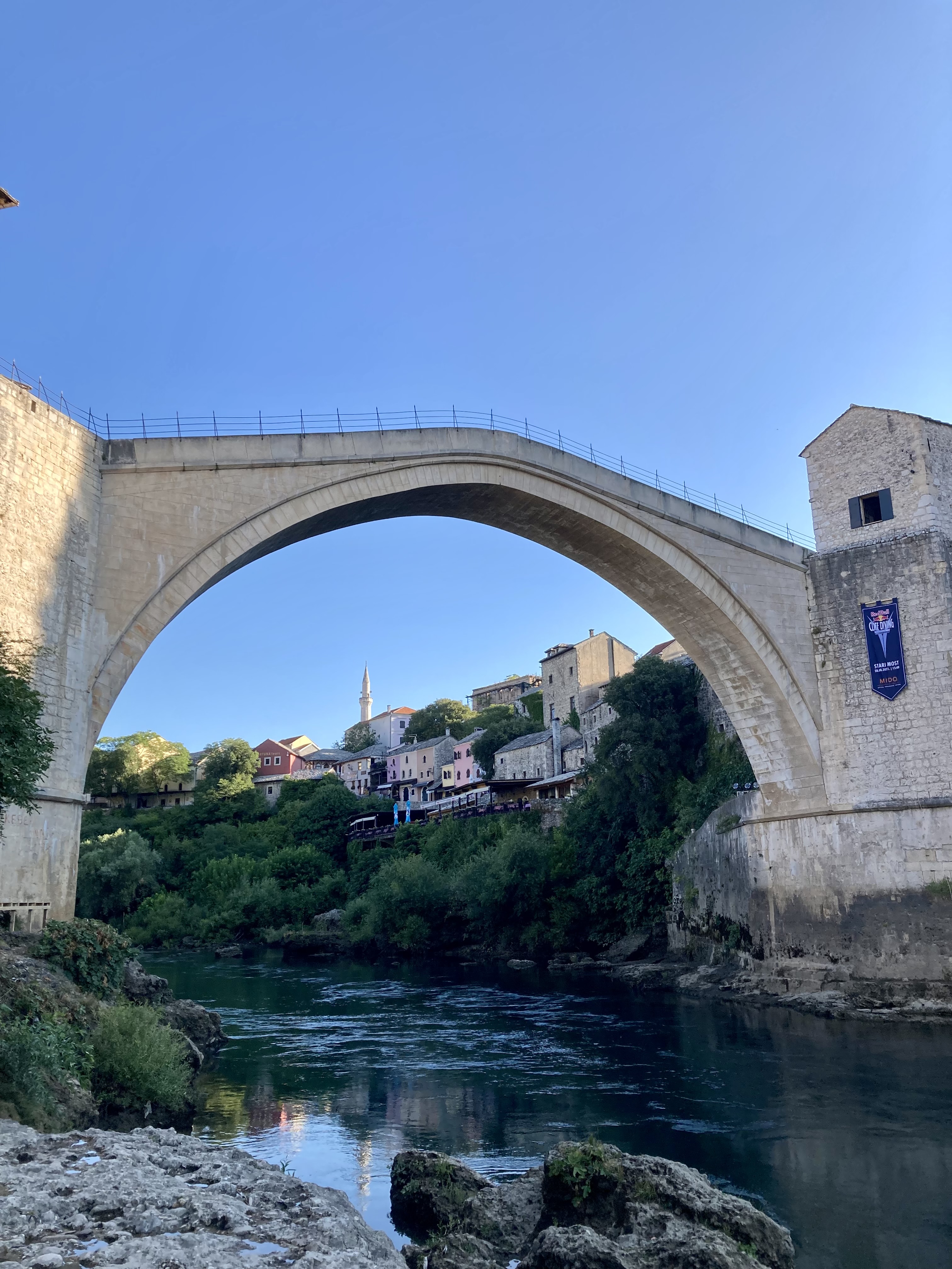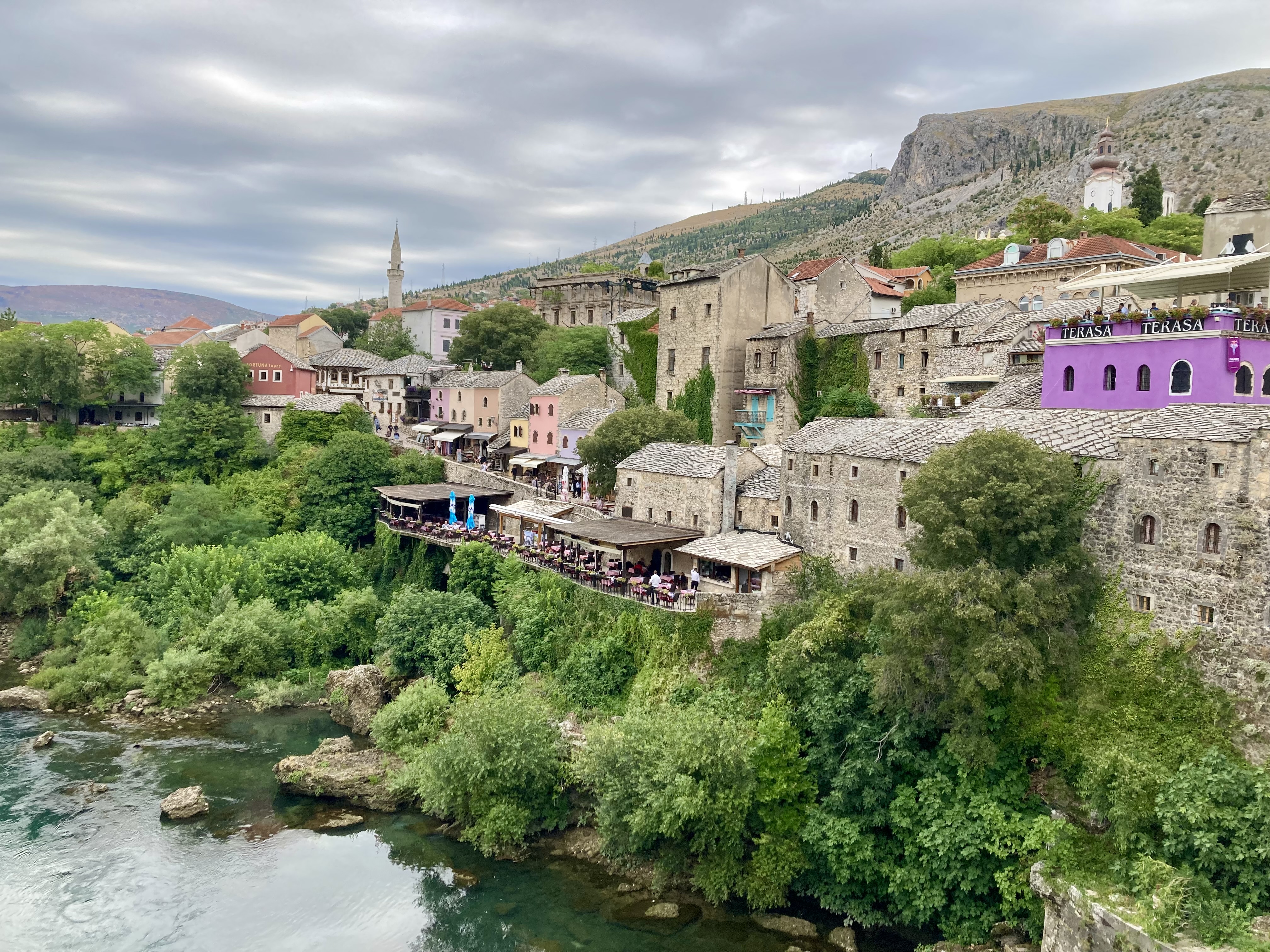 I took an early morning train to Mostar and utilized google translate for the first time when trying to communicate with the train station attendant (it worked great πŸŽ‰). The trip was really pretty through green mountains and it passed a lovely lake.